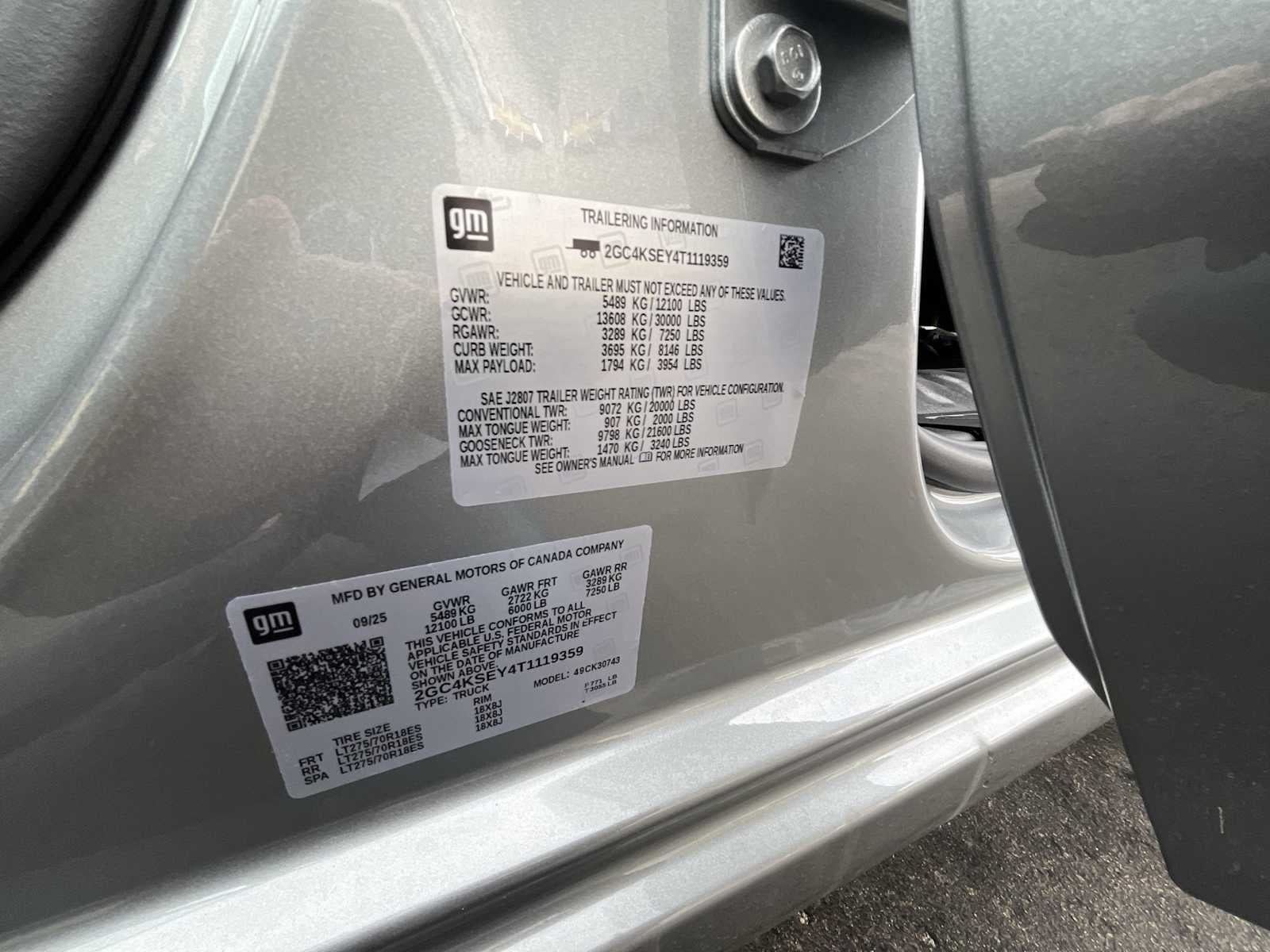 ENGINE, DURAMAX 6.6L TURBO-DIESEL V8, B20-DIESEL COMPATIBLE (470 hp [350.5 kW] @ 2800 rpm, 975 lb-ft of torque [1322 Nm] @ 1600 rpm), GOOSENECK / 5TH WHEEL PREP PACKAGE -- Hitch platform to accept Gooseneck or 5th Wheel hitch. Includes hitch platform with tray to accept ball, stamped bed holes with removable caps installed and bed mounted 7-pin trailer harness (similar to UY2 harness). (Includes (CGN) Chevytec spray-on bedliner. MIRRORS, OUTSIDE POWER-ADJUSTABLE VERTICAL TRAILERING WITH HEATED AND AUTO-DIMMING UPPER GLASS lower convex mirrors, turn signal indicators, puddle lamps, perimeter lighting, auxiliary lighting, power folding/manual extending (extends 3.31" [84.25mm]) Includes (DD8) auto-dimming rearview mirror. WT CONVENIENCE PACKAGE includes (QT5) EZ Lift power lock and release tailgate, (AKO) tinted windows, (C49) rear-window defogger, (DBG) power trailer mirrors with heated upper glass and manual extending/folding, LPO, BLACK WORK STEP (dealer-installed), BED VIEW CAMERA camera in the CHMSL to show a view of the cargo bed, display located in rearview mirror, GLASS, DEEP-TINTED, AUDIO SYSTEM, CHEVROLET INFOTAINMENT 3 SYSTEM, 7" DIAGONAL HD COLOR TOUCHSCREEN, AM/FM STEREO Bluetooth® audio streaming for 2 active devices, voice command pass-through to phone, Wireless Apple CarPlay® and Wireless Android Auto® compatibility (STD), TRANSMISSION, 10-SPEED AUTOMATIC.